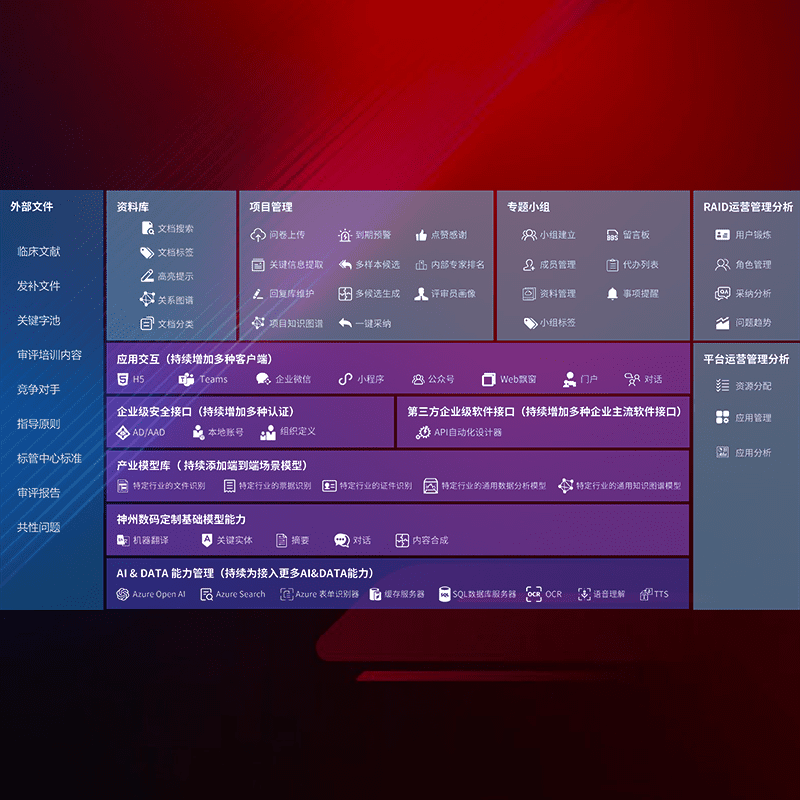 医疗器械产品上市前,,,要熟悉严格与繁复评审标准,,,整理分析监管机构指导文件中的海量信息。。。。企业急需一个智能化解决方案,,,,提升知识管理效率,,,提高评审通过率,,,以提升其市场竞争力。。。