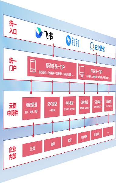 对协作平台提供支持服务,,支持企业应用与协作平台对接,,,,包含组织同步、、消息集成、、、待办集成等。。支持目前主流的协作平台:钉钉、、、企微和飞书。。