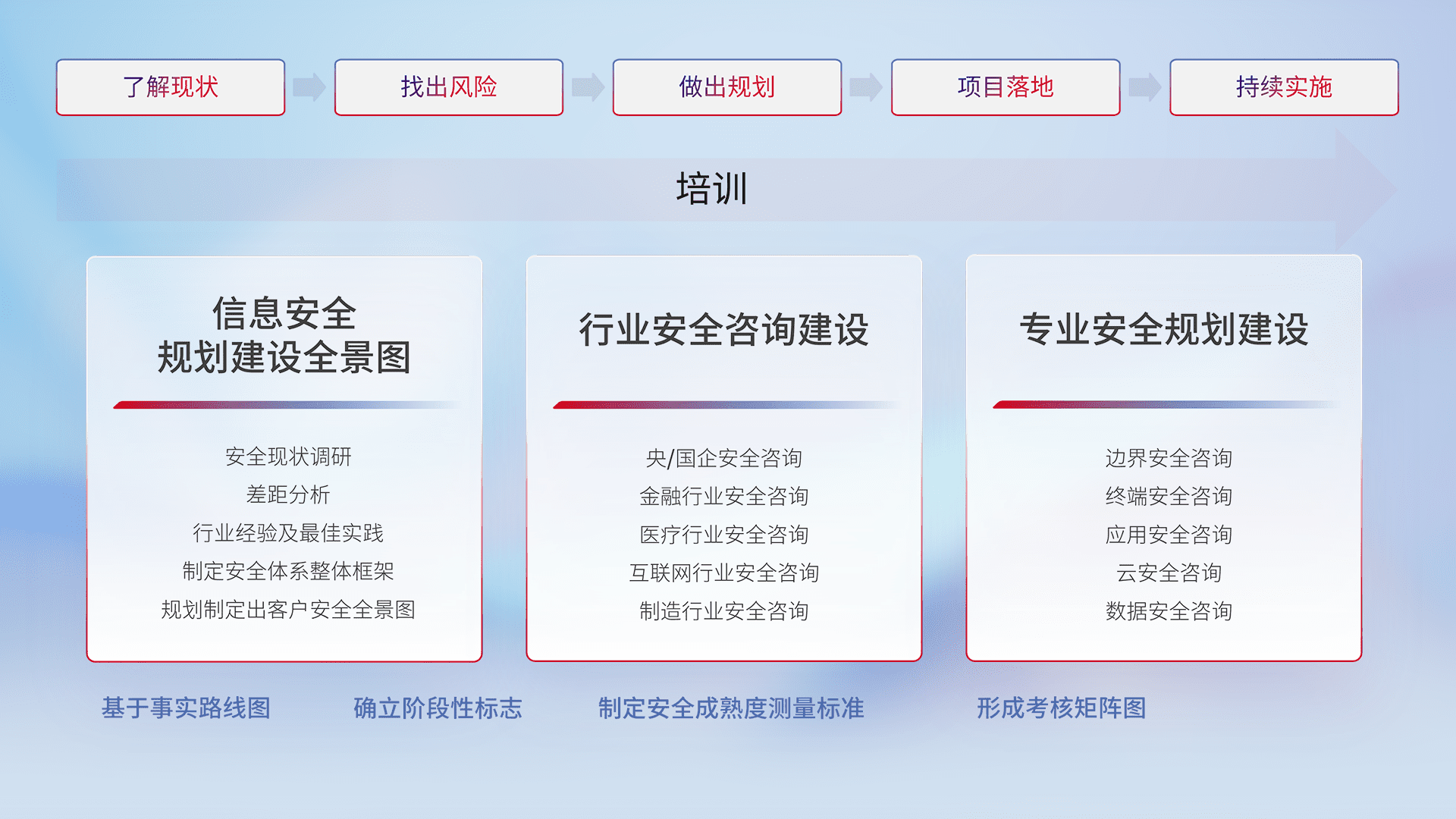 针对客户行业特性,,将宏观的安全战略和需求,,通过专业的交付服务,,实现项目落地,,为客户提供标准规范的集成交付服务。。。。